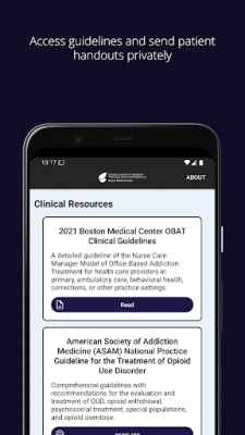 This app offers healthcare providers the latest evidence-based guidance for treating opioid and alcohol use disorders (OUD and AUD) assisting in the initiation of medications such as buprenorphine and naltrexone. This is an essential tool for those starting patients on these medications, providing step-by-step clinical decision trees and valuable resources for managing not only AUD and OUD but acute and chronic pain for patients already on buprenorphine or naltrexone. With interactive tools, treatment protocols, and patient messaging features, this app empowers clinicians to deliver life-saving care while improving treatment outcomes for substance use disorders.