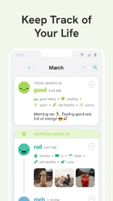 Daylio is a powerful, all-in-one journal, diary, and mood tracker that helps you understand yourself better. Use it as a private diary, gratitude journal, or mental health tool to support your emotional well-being. Whether you're tracking mood swings, forming new habits, setting goals, or managing anxiety, Daylio adapts to your needs.