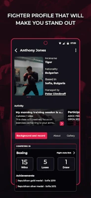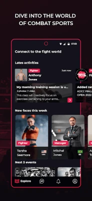 Create your professional profile and start connecting right away! You can apply to fight on events directly with the promoters, check out other competitors, choose and connect with a manager or simply browse the fight world and discover opportunities to grow your career.