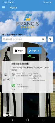 • Check the availability of chargers in real-time • See charger details and save your favorite charging locations • Start and stop your charging session from your phone • View live charging information while you take a break from the road • See your charging history and view statements Francis Energy’s DC fast charging stations support all CCS (SAE Combo) and CHAdeMo compatible EVs. You can also use the app to find Level 2 chargers (with J1772 connectors) You can charge almost all electric vehicles on the road with us from manufacturers including: Audi BMW Chevrolet Ford Hyundai Kia Mercedes-Benz Nissan Polestar Porsche Rivian Tesla Toyota Volkswagen