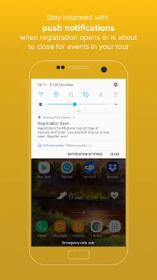 - Golfers can join or connect using their Golf Genius credentials. - Golfers can review the events schedule and quickly register for events. - Golfers can view important event information such as the event pairings and tournament results. - Push notifications alert golfers when registration opens or is about to close for section events.