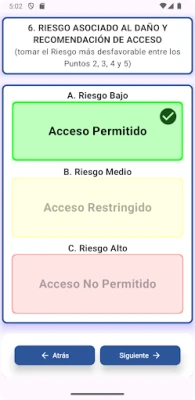 Cuenta con siete secciones donde el procedimiento para identificar el riesgo más desfavorable entre las asignaciones de riesgo resultantes entre las secciones dos, tres, cuatro y cinco. La metodología descrita en López et al. (2023) especifica los criterios necesarios para determinar si al edificio le corresponde: 1) Acceso permitido (etiqueta verde), b) Acceso restringido (etiqueta amarilla), c) Acceso no permitido (etiqueta roja).