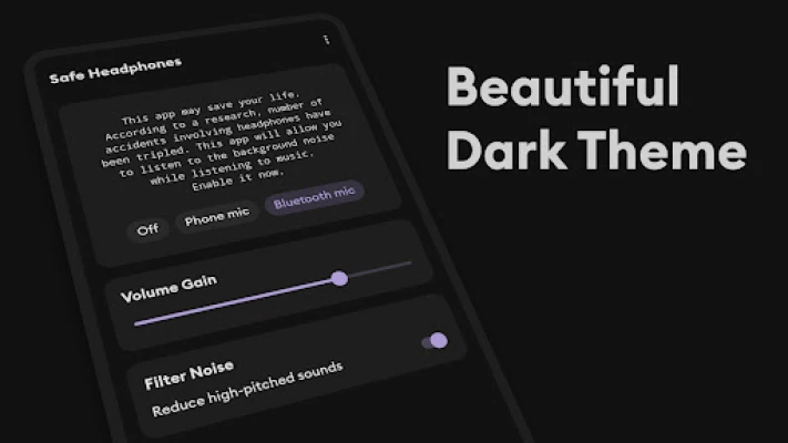This app will turn your Headphones into Noise Un-Cancelling Headphones which will allow you to hear background noises and Car Horns while listening to Music. Now you can use your headphones in public places without worrying about safety. This app can also be used as a hearing aid if anyone with hearing loss. This app also works with Bluetooth headphones. Boost your hearing and amplify the sound of the surroundings with ease.