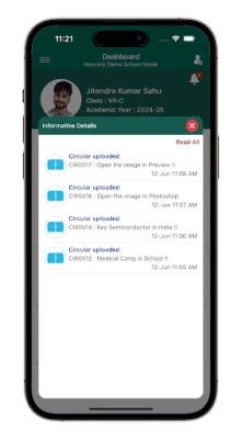 This app also helps School Management keep track of and supervise all daily activities related to Students/Parents and Employees. This app sends automatic notifications to respective users regarding any update in their information..