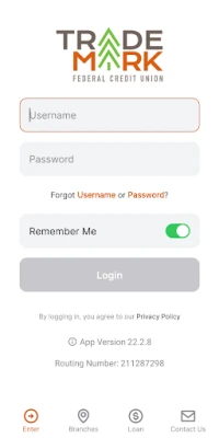With the Trademark Mobile Banking app you can access your accounts anytime, anywhere from your phone or tablet. This application was designed with you in mind to bring all of our online features anywhere you go. Check your balances, review your history, transfer funds, pay your loans, send cash, apply for a loan and find the nearest branch, ATM or Shared Branching location.
